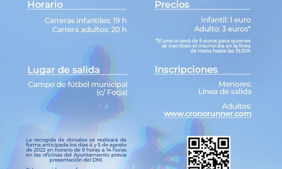 Sábado 3 de Septiembre de 2022, 22:30 h. Distancia: 15.000 m. Corredores llegados a meta: 472. Mariemy Azorín, 1:08:32, 113 General, 1 Veterana B Toni Puchades, 1:08:27, 114 General, 15 Sénior masculino Andrés Fajardo, 1:14:19, 189 General, 71 Veterano A Berni Menor, 1:16:55, 222 General, 80 Veterano B Rosa Garrote, 1:21:22, 307 General, 2 Veterana